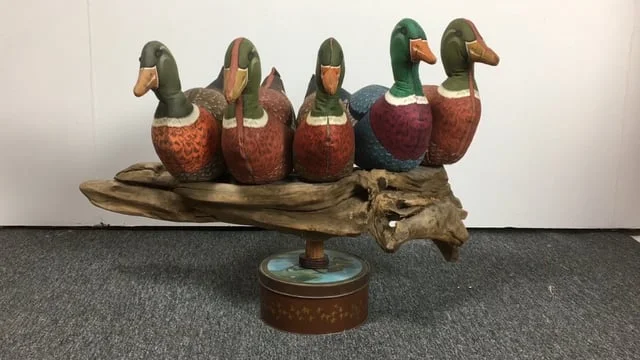 The bananas are perched on top of a piece of driftwood to play with the ideas of formal sculpture. The shape and movement are beautiful aesthetically. Additionally the relationship between the bananas is played up as they interact with their comrades giving the piece a suggestion of narrative. All that said, they are bananas on a log. And they reference the ducks on a log from "Ducks in a Row" as if we're setting up the expectation of more groups of things on a logs.