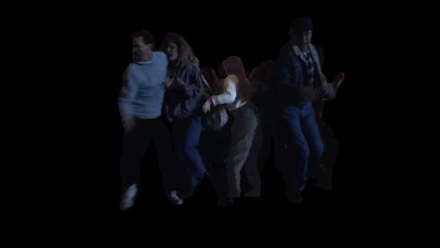 This is a collection of scenes from movies in which people are falling through space. The clips are edited together to seamlessly transition from one individual to the next. The figure remains in the center of the screen while the backgrounds fly past allowing for the focus of our attention to go from falling to floating. It is unclear what or who is in control but the viewer is invited to let go of expectation and trust in the suspension.