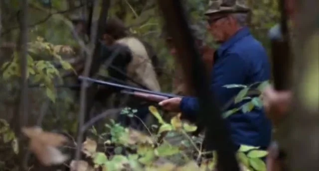 This video shows a line of armed men walking through the woods, flushing out their target. Clearly a civilian group with their hunting rifles, motive is not evident. What becomes clear is that this is an unending loop. The hunters are perpetually walking forward, guns drawn. The anticipation is never resolved. The action is inevitable although the climax is unknown.